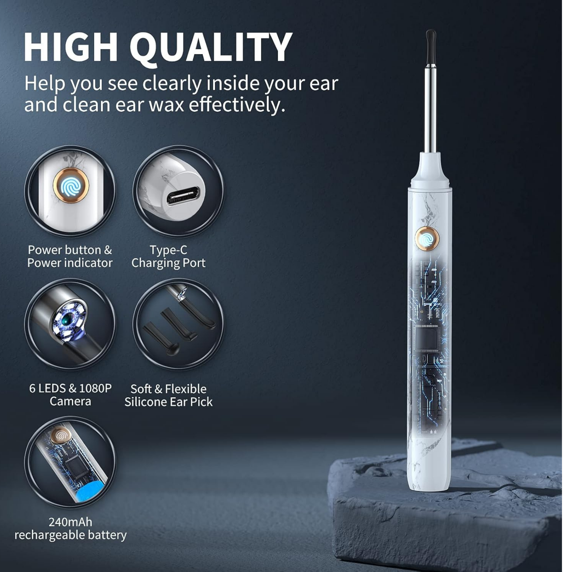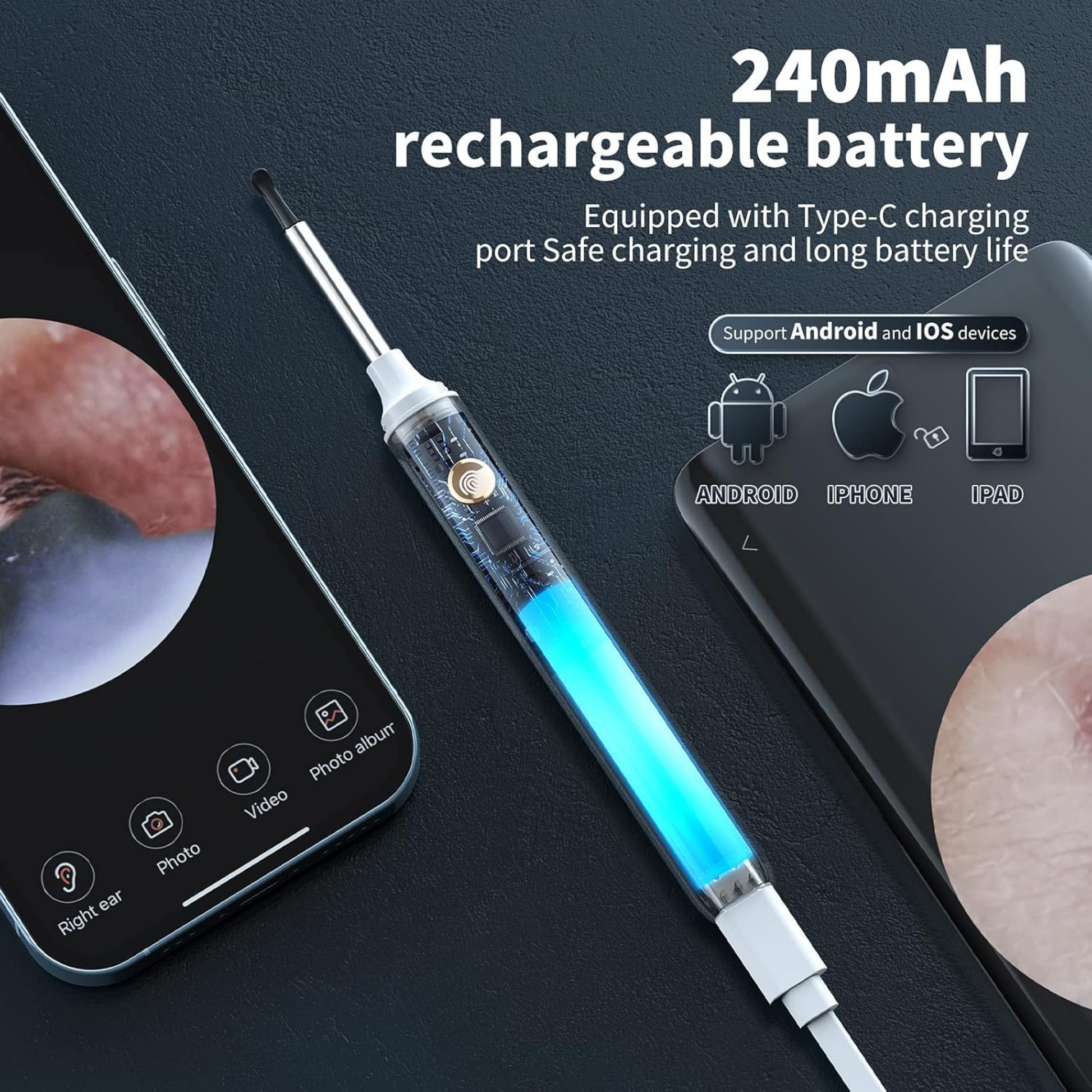 Di adiós a los hisopos de algodón tradicionales, elige utilizar nuestro limpiador visual de oídos diseñado profesionalmente con cámara para detectar claramente la salud interna de tus oídos.